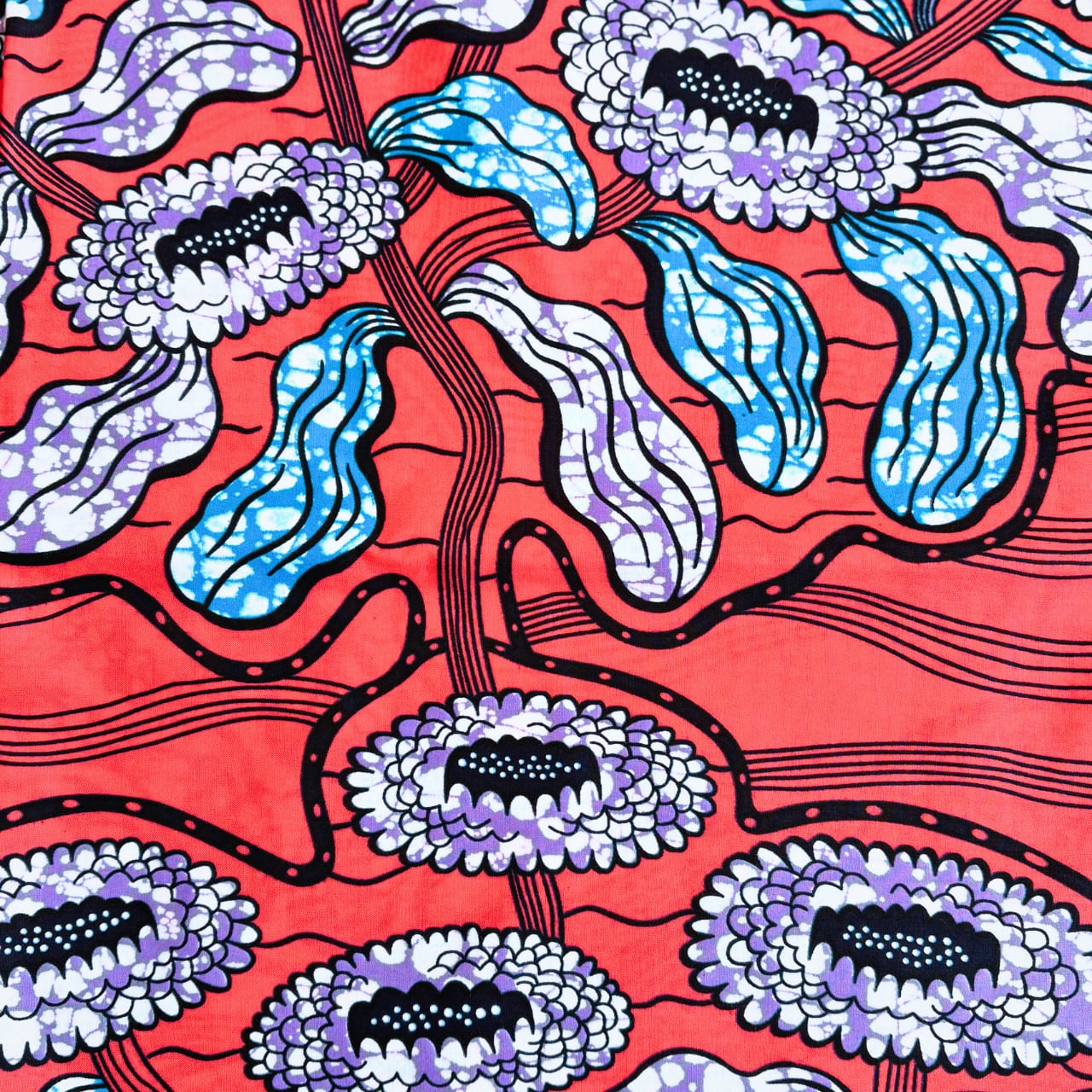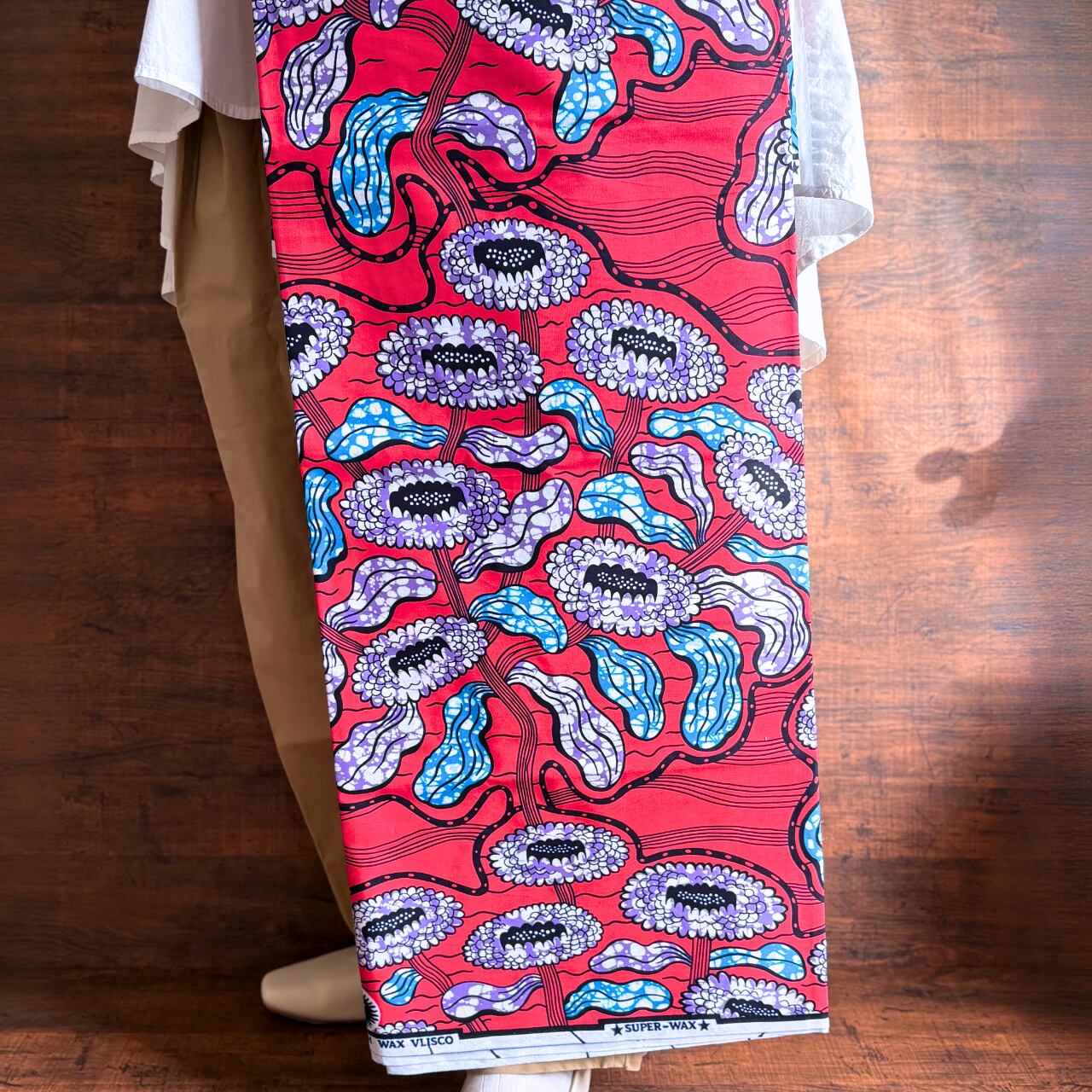 ■アフリカンプリント生地はデジタルプリントではない為、画一的ではない個性的な風合いが特徴です。また1枚1枚作成している為、裁断などによる柄の出方も写真とは異なる場合がございますのでご了承ください。